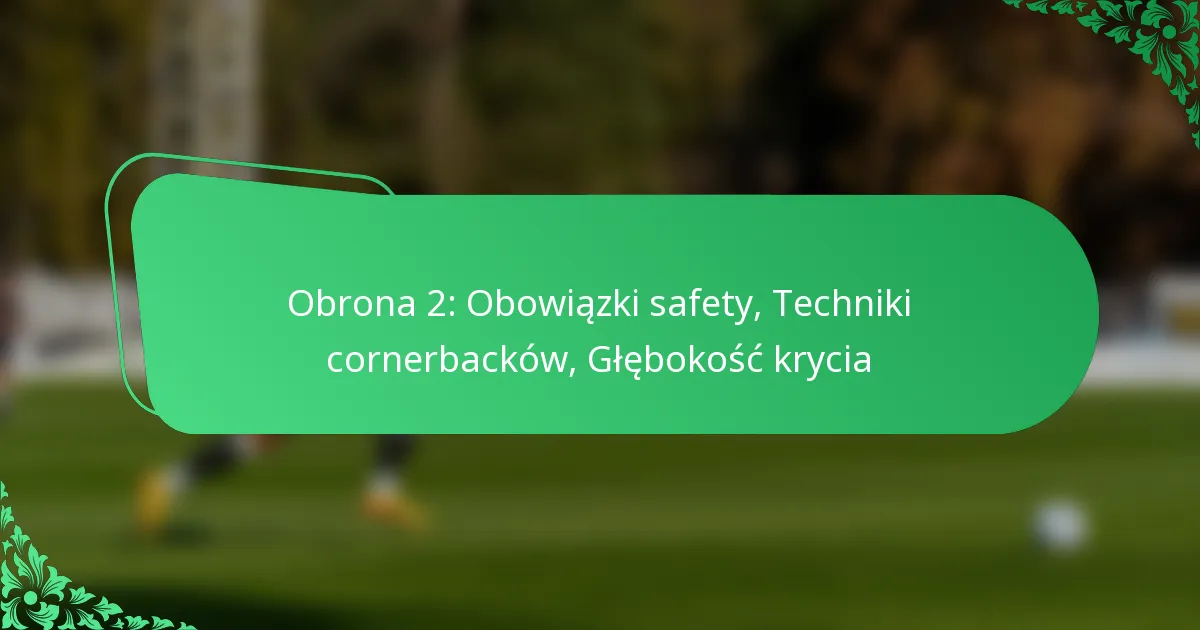 Cornerbacki w obronie Cover 2 muszą koncentrować się na utrzymywaniu odpowiedniej pozycji i skutecznych technikach, aby zapewnić solidne krycie. Ich obowiązki obejmują obronę przed krótkimi i średnimi trasami, jednocześnie wspierając safety w głębokim kryciu. Opanowanie tych technik jest kluczowe dla skutecznego wykonania obrony.