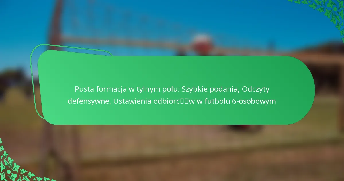 Formacja pustego backfieldu w futbolu 6-osobowym to układ, w którym żaden biegacz nie jest ustawiony w backfieldzie, co pozwala na większe skupienie się na zagraniach podaniowych. Ta formacja ma na celu stworzenie niedopasowań w kryciu i wykorzystanie słabości obrony poprzez szybkie, strategiczne podania.