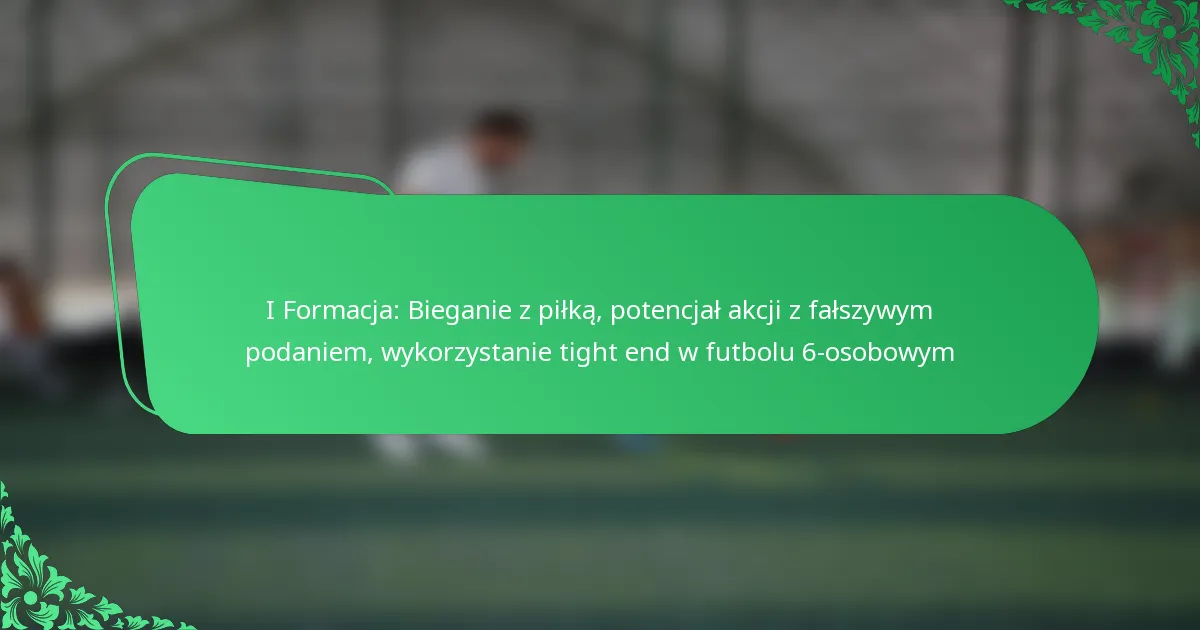 Formacja I oferuje znaczący potencjał gry akcji, skutecznie udając bieg, aby przyciągnąć obrońców, tworząc możliwości dla zagrań podaniowych. Ta strategia wykorzystuje ustawienie graczy do zdezorientowania obrony, co czyni ją cennym podejściem w futbolu 6-osobowym.