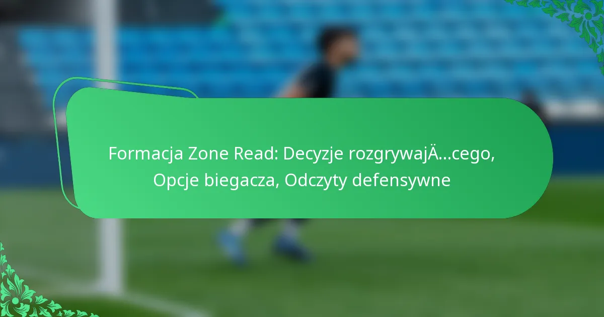 Formacja zone read to strategiczna gra ofensywna w futbolu, która pozwala rozgrywającemu na szybkie podjęcie decyzji na podstawie ustawienia obrony. Polega na tym, że rozgrywający analizuje konkretnego obrońcę, aby zdecydować, czy podać piłkę biegaczowi, czy zatrzymać ją dla siebie, tworząc opcje dla ofensywy w zależności od reakcji obrony.